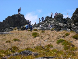 37 people in 12 cars visited Kawarau Station where owner, Richard Anderson, told the history of the run, the Category I shearing shed, and the homestead buildings. Over Duffers Saddle to Nevis Crossing with Bruce McMillan giving commentary. Back to Watts Rock on the ridge. Some drove down the Young Australian waterwheel and on to Carricktown.
